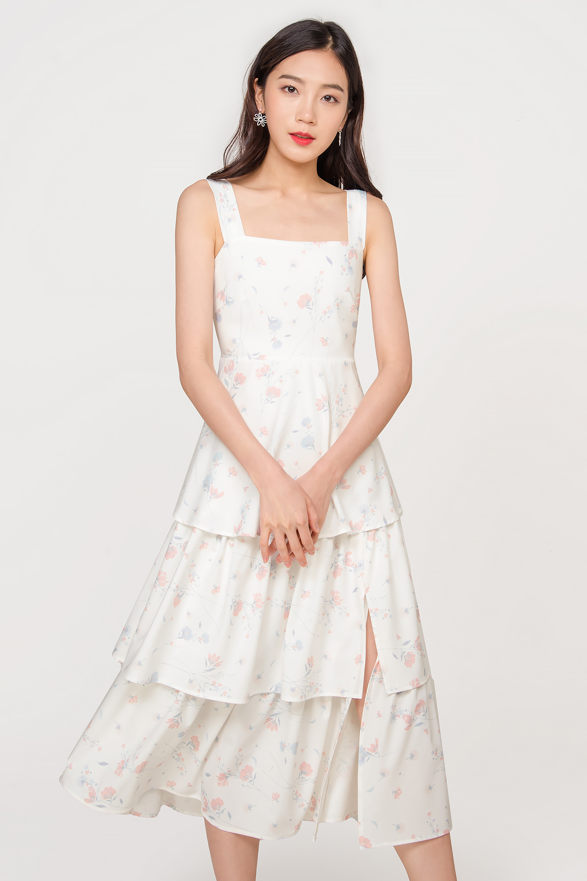 floral midi dress with slit sale