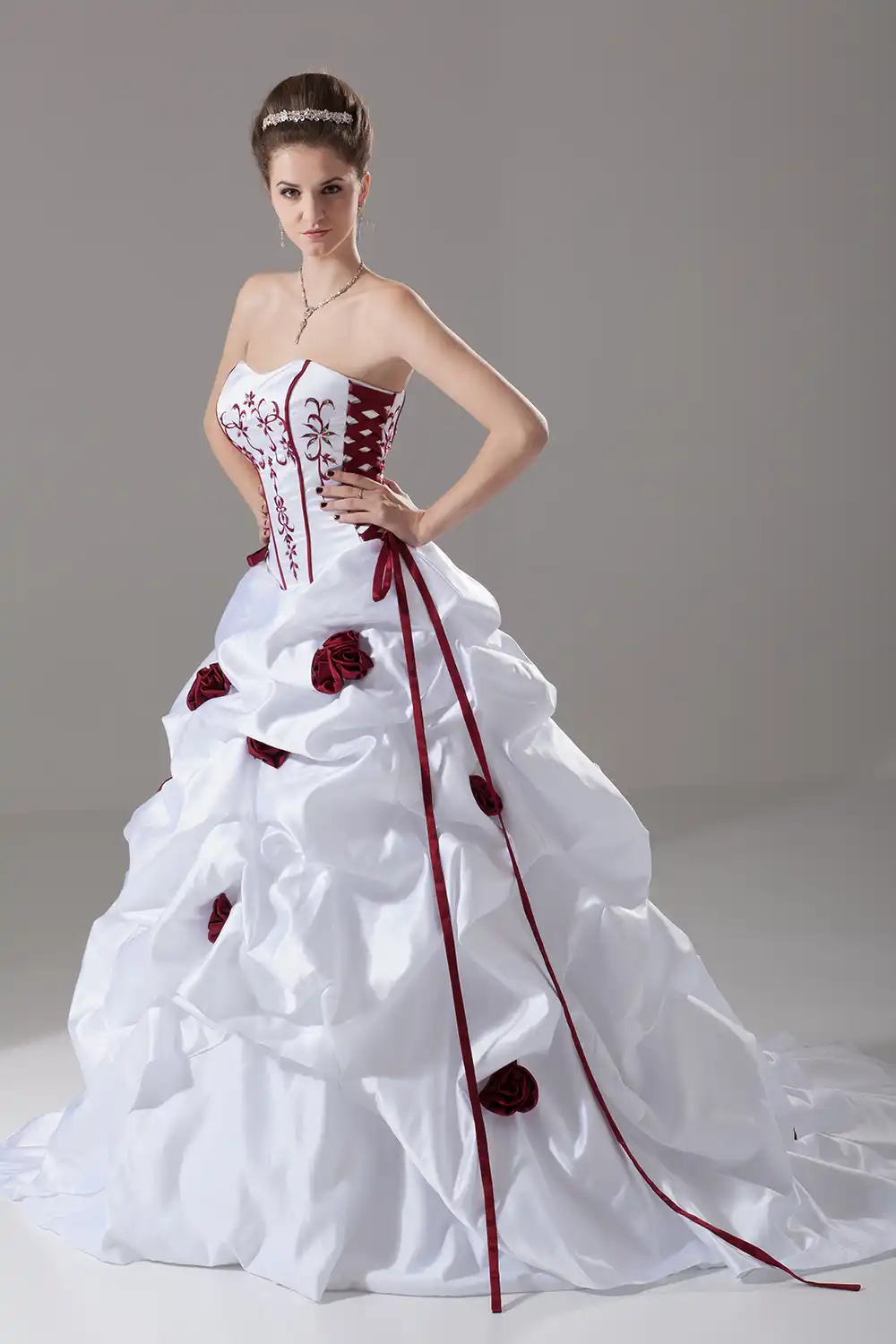 red and white ball gown sale
