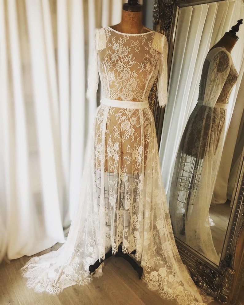 sheer lace dress overlay sale