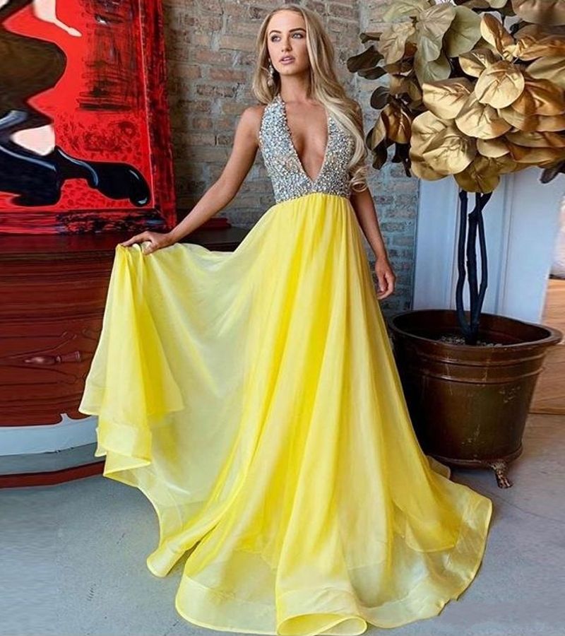 yellow halter dress sale
